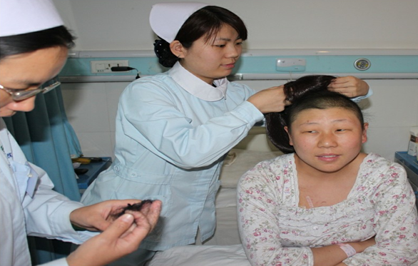 戴上假发,小许的脸上露出了久违的笑容,激动的对我们说:“善良的白衣天使们,你们不仅治好了我的病,也温暖了我的心,我发自内心感谢你们!”。