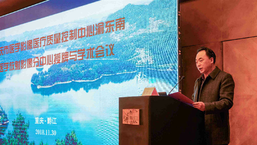 11月30日,重庆市医学影像医疗质量控制中心渝东南医学放射影像分中心授牌仪式在隆鑫玫瑰酒店举行,区卫生计生委主任冯本学、黔江中心医院党委书记程举光出席授牌仪式并致辞,重庆市医学影像质控中心主任郭大静为渝东南医学放射影像分中心授牌,黔江中心医院副院长何建峰接牌。市医学影像质控中心领导及永川、南川、酉阳、秀山、彭水、石柱、武隆等区县放射影像学专家参加了授牌仪式。